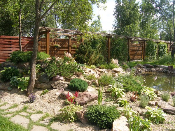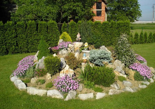 - Il est préférable de choisir un endroit clairement visible, par exemple le centre du site. Cela vous permettra d'admirer le jardin de rocaille dans différentes parties du jardin sous différents angles.