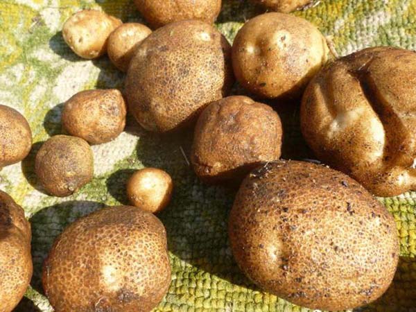 - la masse moyenne d'un tubercule est d'au moins 75 à 85 g (mais en règle générale, tous les tubercules sont très gros, plus de 100 grammes);