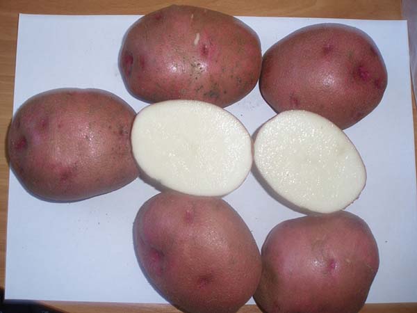 Toutes les autres variétés de pommes de terre blanches (par ordre alphabétique): Ivory Russet, Akrosia, Barin, Batya, Bafana, Bashkirsky, Belousovsky, Bryansk new, Bryansk red and early (2 variétés différentes), Varmas, Bleuet (à peau violette), Inspiration, Printemps blanc, Messager, Vétéran, Volare, Volzhanin, Colombe, Goryanka, Divo, Donetsk, Evgiriya, Eurostarch, Ermak amélioré, Énigme de Peter, Zabytok, Ilyinsky, Spark, Carlingford, Kolpashevsky, Beauté, Rose rouge, Kuznechanka, Lazar , Lapis Lazuli, Gourmet, Lady Lenora, Leader, Lina, Lyubimets, Malamur, Robin, Lighthouse, Moskvoretsky, Mostovsky, Nalchiksky, Nart, Narymka, Nida, Nikulinsky, Nocturne, Olympus, En mémoire de Kulakov, Penza skorospelovets, Pogareda, Pogareda, Pogareda, Pogareda Vol, Foothill, Priobsky, Pushkinets, Ramensky, Real, Reserve, Resource, Samara, Santana, septembre, Sineva, Sifra, Fairytale, Rapid, Bouvreuil, Tarasov, Tomich, Tulunsky early, Udalts, Ural early, Torch, Filatovsky, Khibinsky , Hôtesse, sorcier, effet, jubilé de Joukov.