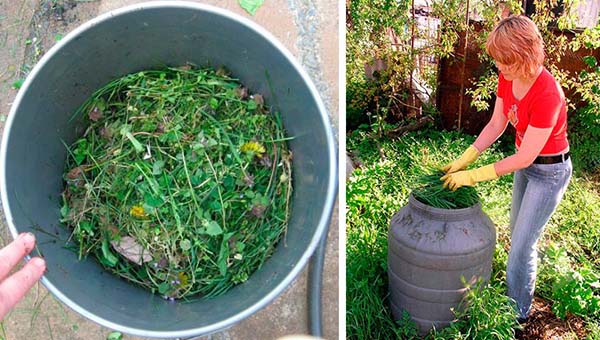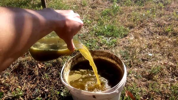 - Engrais vert (infusion d'herbes) tu peux même donner tous les jours (ou tous les deux jours), combinant entièrement avec l'irrigation. Il en va de même pour l'alimentation avec infusion de foin, de molène fermentée (excréments de poulet).