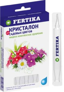 - Fertika Kristalon pour les fleurs de jardin (liquide avec oligo-éléments);
