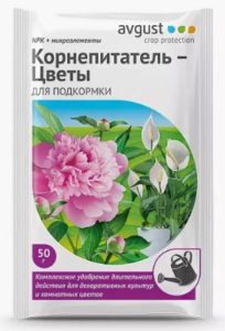 - Ou "Nourrisseur de racines - Fleurs»(Un engrais complexe d'action à long terme avec des micro-éléments).