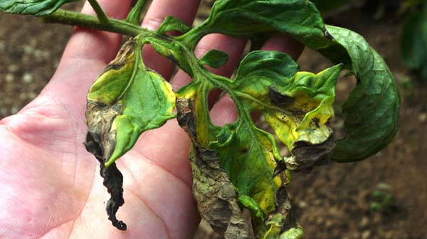 Remarque! On pense que les spores de phytophthora se trouvent dans n'importe quelle terre et qu'elles ne sont activées qu'à partir de gouttes d'eau tombées sur le sol et rebondissant sur les feuilles.