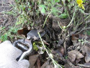 Les tiges de chrysanthème sont coupées immédiatement après le début du premier temps froid d'automne. Dans ce cas, la longueur des pousses coupées ne doit pas dépasser 14-15 cm.