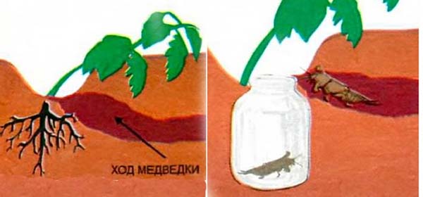 L'écrevisse de terre s'installe avec grand plaisir sur nos parcelles et à la recherche de nourriture pour la procréation, se déplaçant dans les couches supérieures du sol, ronge le système racinaire de la plante et gâte les feuilles. Si hier vous avez planté des plants et qu'ils se tenaient parfaitement, alors le matin, s'il y a des ours dans votre jardin, les plants peuvent tomber et se faner complètement.