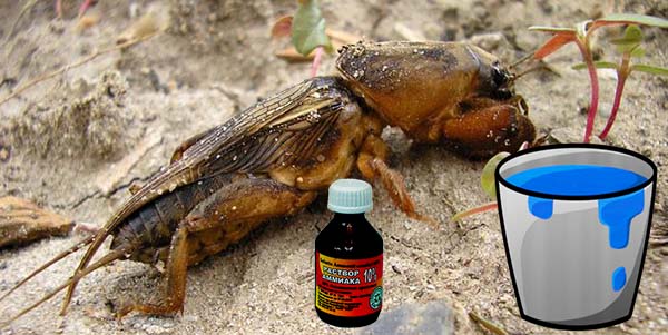 Une solution d'ammoniaque (ammoniac) est non seulement une excellente alimentation, mais aussi une méthode efficace dans la lutte contre un ours. Vous devez diluer le produit comme suit: prenez de l'ammoniaque à 10% et ajoutez 1 cuillère à soupe pour 10 litres d'eau. cuillère, en remuant bien. Arrosez les semis nouvellement plantés sous la racine avec la solution, essayez de ne pas toucher les feuilles. Une fois l'eau absorbée, paillez avec un sol meuble et sec afin que l'ammoniac ne s'évapore pas pendant une longue période, mais agisse dans le sol.