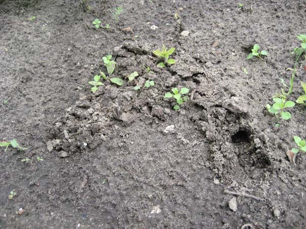 Signes d'apparence les choux dans le jardin sont de petits trous desserrés dans le sol. Dès que vous les trouvez, vous devez immédiatement prendre des mesures pour combattre l'ours.