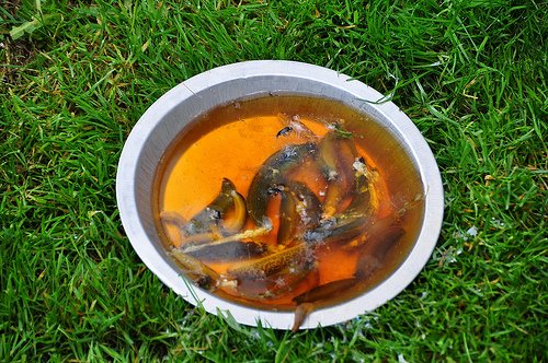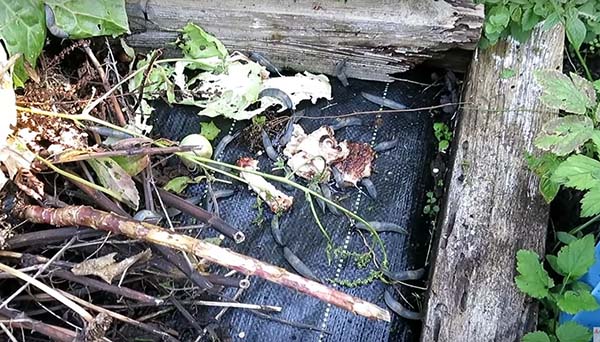 Un autre leurre d'escargot est la viande frite, en particulier les brochettes. Par exemple, vous pouvez jeter une peau de poulet frit dans un endroit sombre et après 5 à 10 minutes, les limaces apparaîtront pour une odeur appétissante.