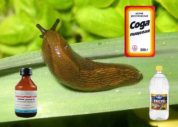 La pulvérisation d'ammoniaque, de vinaigre et de bicarbonate de soude aide à protéger les plantes des escargots et des limaces. Pour préparer une solution, prenez 1 cuillère à café du produit (le vinaigre est préférable de prendre 9%) et dissolvez dans 1 litre d'eau. Pulvérisez les plantes de haut en bas et sur les feuilles.