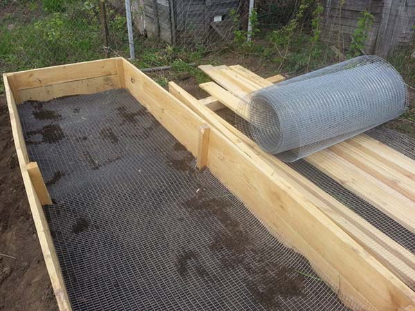 Cependant, vous pouvez le faire plus facilement en faisant un lit de protection spécial des taupes, à savoir: mettre un treillis métallique sur le fond et installer de hauts côtés en bois.