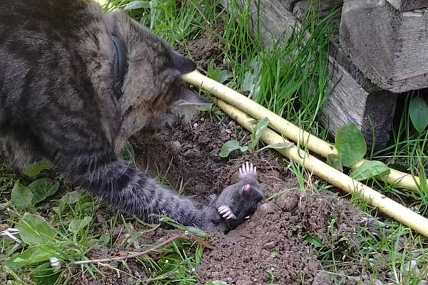 Dans la lutte contre les taupes, vos propres animaux de compagnie peuvent vous aider, par exemple, les chats et les chiens (en particulier les teckels et les fox terriers) sont considérés comme des chasseurs assez adroits et habiles de ces ravageurs souterrains. Par conséquent, emmenez plus souvent vos animaux de compagnie à la datcha, laissez-les obtenir leur propre nourriture dans la nature.