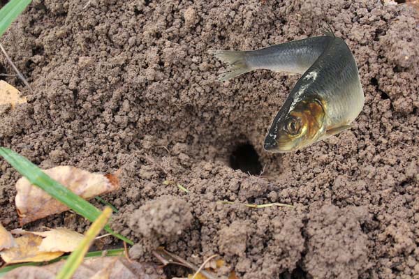 Pour que la taupe quitte votre site pour toujours, vous pouvez essayer d'enterrer une tête de poisson puante d'un hareng dans un trou de ver ou de mettre la peau d'un poisson fumé, essayez simplement de pousser le «puant pourri» plus profondément à l'intérieur, en vous aidant en plus d'un bâton. Fermez ensuite l'entrée en la bloquant avec une pierre, puis saupoudrez-la de terre et tamponnez-la avec vos pieds.