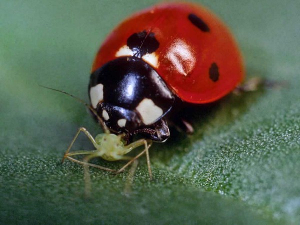 Vous pouvez aider à lutter contre les puceronscoccinelle, qui adore le manger au petit-déjeuner, y compris ses larves.