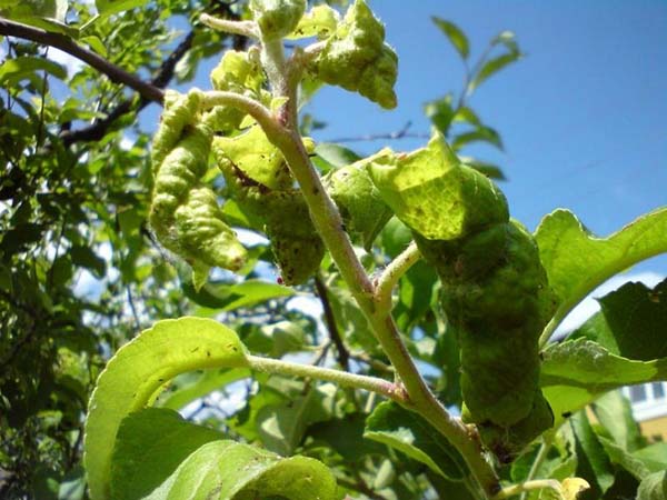 Lorsqu'un arbre fruitier est maîtrisé par les pucerons, ses feuilles commencent à s'enrouler, ce qui affecte négativement les pousses et la future ponte des boutons floraux. Le fait est que les processus de photosynthèse dans ces branches sont perturbés, ce qui fait que la plante cesse de recevoir une nutrition normale.