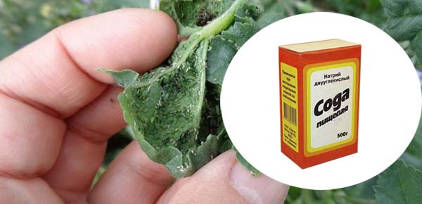 Un moyen efficace de se débarrasser des pucerons est la soude. La solution est préparée comme suit: dissoudre 50 grammes de soude dans 10 litres d'eau (soit environ 3 cuillères à soupe. Cuillères), encore une fois, vous devez ajouter en plus 5 cuillères à soupe. cuillères de savon à lessive liquide et 3 cuillères à soupe. cuillères à soupe d'huile de tournesol.