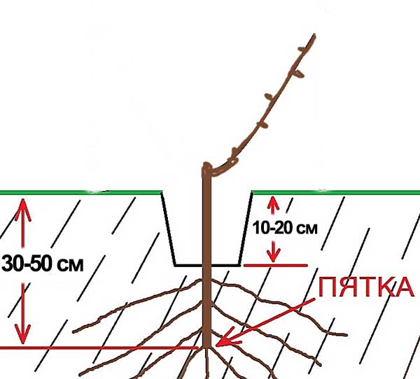 Les racines du talon doivent être situées à une profondeur de 30 à 50 de la surface du sol (en moyenne exactement 30 cm).