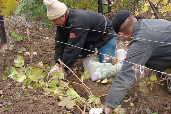 Remarque! Avant de couvrir vos raisins à l'automne, vous devez les préparer correctement pour l'hiver. Pour cela, il est recommandé d'effectuer une gamme d'activités de soin de la vigne en automne, à savoir: le couper, retiré du treillis, pour traiter les maladies et les ravageurs, et ne pas oublier la charge d'humidité plus tôt et nourrir.