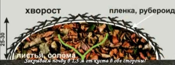 Important! Si vous allez recouvrir les buissons de terre, l'abri doit être réalisé avant que la couche supérieure du sol ne gèle, car si la terre est gelée, il sera pratiquement impossible de recouvrir les buissons de terre.