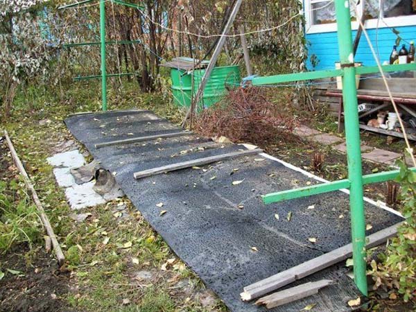 Mais en général, les feuilles et la paille sont généralement utilisées comme matériau de paillage, pour une meilleure conservation de la chaleur, et des arcs sont déjà installés sur le dessus, sur lesquels un matériau de couverture résistant à l'humidité est posé.