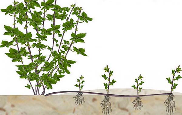 - pour debout variétés d'arbustes adaptées à la reproduction par drageons et boutures, divisant les buissons, mais la propagation avec des couches apicales et horizontales n'est guère possible, bien que théoriquement elle soit possible.