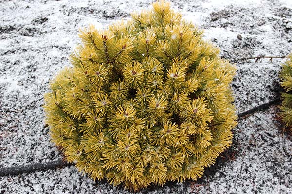 - Winter Gold (a une forme d'arbuste sphérique, pousse très lentement et atteint finalement 0,5-1 mètre, jaune d'or seulement en hiver, d'où son nom).