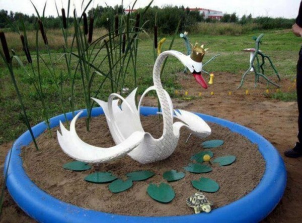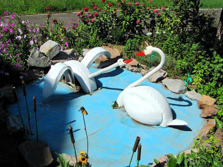 - Faites un lit de cygne. Vous pouvez placer l'oiseau dans n'importe quelle zone visible du jardin et en faire un parterre de fleurs avec vos fleurs préférées.