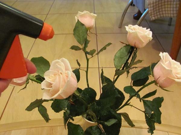 - arroser avec de l'eau d'un vaporisateur (spray) pour empêcher l'évaporation de l'humidité à travers la surface de la fleur et pour accélérer la «réanimation».