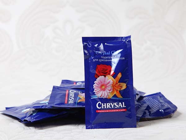 Vous pouvez également utiliser des poudres chimiques spéciales (additifs floristiques) pour les fleurs coupées, par exemple Chrysal, "Bud", "Vitant". Ils contiennent déjà à la fois des désinfectants et des nutriments (c'est-à-dire que vous n'avez pas besoin d'ajouter d'aspirine et de sucre).