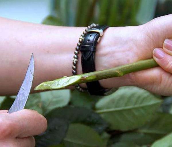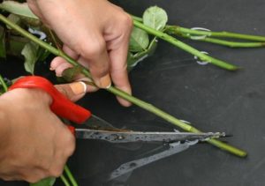 Remarque! Il est recommandé de renouveler la coupe sous l'eau (par exemple, dans un large bassin) afin que l'air ne pénètre pas dans la tige et obstrue l'alimentation électrique de la rose.
