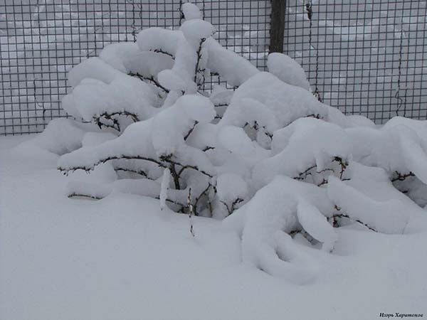 Si vous vivez dans une maison privée (vous pouvez difficilement vous rendre à la datcha s'il neige déjà), vous pouvez couvrir les groseilles à maquereau pour l'hiver avec la neige elle-même. Tout d'abord, jetez-le simplement sous le buisson, puis remplissez-le complètement.