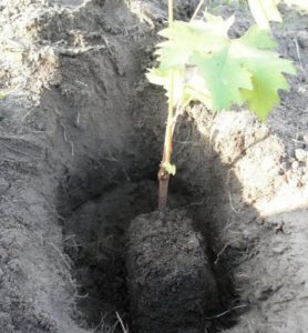 Important! La plantation de jeunes plants de raisin commence après que le sol se réchauffe au-dessus de +12 .. + 15 degrés.