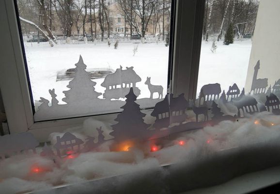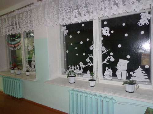 Les fenêtres sont les yeux de tout bâtiment, à travers elles, nous regardons le monde, que ce soit à la maison ou dans un bâtiment scolaire. Et si vous décorez magnifiquement les fenêtres de la classe pour le Nouvel An, vous pouvez les admirer à la fois de l'intérieur et de l'extérieur de l'école.