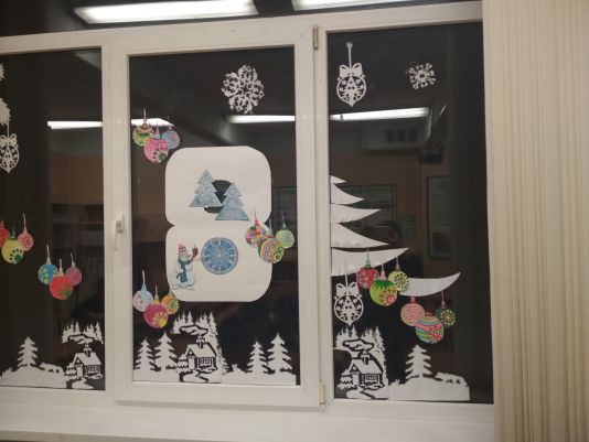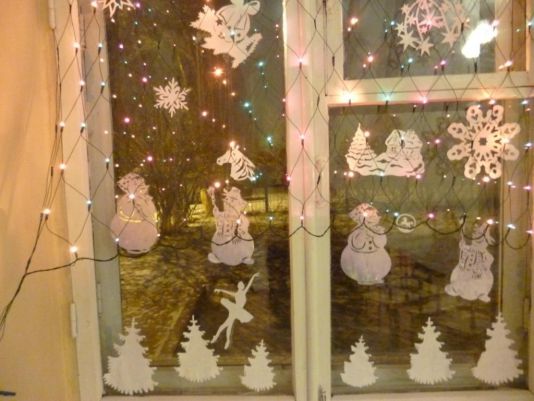 Photos de la décoration des fenêtres de la classe pour la nouvelle année pour l'inspiration et des idées originales: