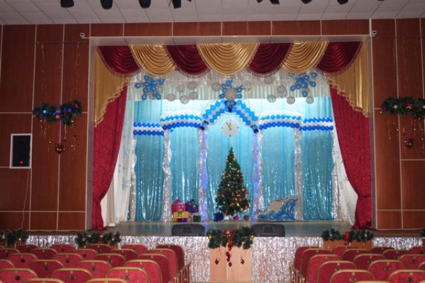 Si la direction de l'école est fidèle à l'activité des élèves et les encourage, elle organise des concerts à thème festif qui se déroulent dans la salle de réunion de l'école, sur scène. Pour rendre le concert scolaire plus artistique et mémorable pendant longtemps, il faut le faire à l'écoledécoration de scène pour la nouvelle année. Vous pouvez etUtilisez un grand sapin de Noël au milieu de la scène, des flocons de neige, des guirlandes et de la pluie sur le rideau et du tissu au fond de la scène. L'inscription «Bonne année!», Symboles des silhouettes de nouvel an, découpée dans du papier ne sera pas superflue.
