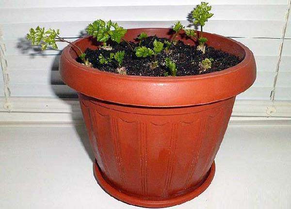 Faire pousser du persil dans une fenêtre en transplantant des racines ou des légumes-racines dans un pot