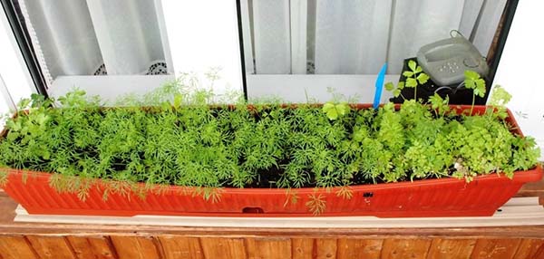 Et en été, il est conseillé de réorganiser le persil sur le balcon.