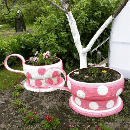 Vidéo: parterres de pneus et de pneus sous forme de tasses à thé