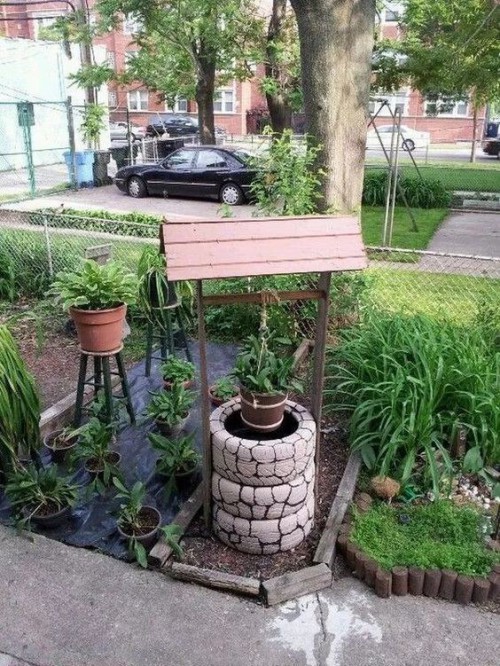 Un parterre de fleurs en pneu de voiture est une solution idéale pour ceux qui souhaitent obtenir une sensation de confort rustique sur leur site. De plus, le puits mettra en valeur la beauté de vos fleurs.