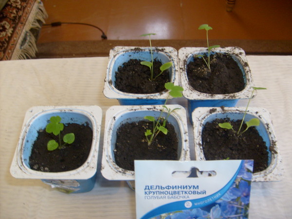 Lorsque la plante a 2 vraies feuilles, vous pouvez commencer à plonger dans le delphinium.