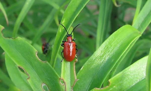 Le principal ravageur des lis est le coléoptère du lys, qui endommage les bourgeons, y laisse ses mouvements laids et mange même des trous dans les feuilles. Vous pouvez vous débarrasser des coléoptères en les ramassant manuellement (de préférence le matin et par temps plus frais, lorsqu'ils sont moins mobiles) ou en pulvérisant sur les fleurs des préparations insecticides telles que Inta-Ts-M, Corado, Commandant Maxi "," Senpai "et" Aktara ".