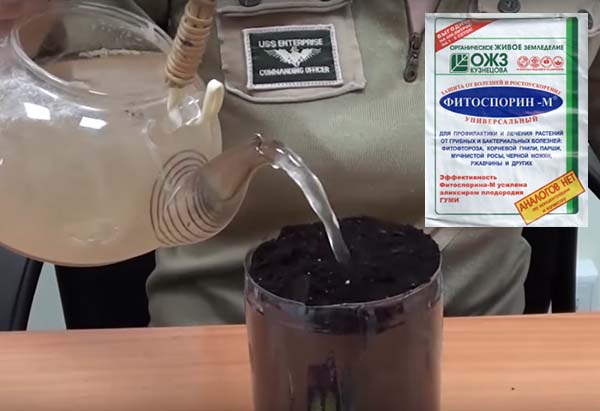 Après la plantation, la terre d'en haut n'interfère pas avec le déversement d'eau ou de solution phytosporine (pour supprimer les agents responsables des maladies fongiques) De plus, cela est nécessaire si vous refusez de désinfecter le sol en le calcinant à haute température.