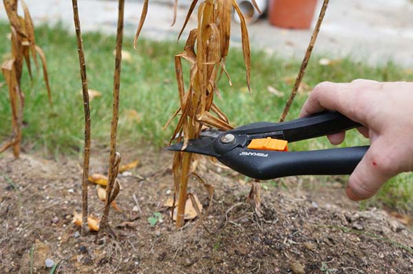 Lorsque vous coupez les lis, vous n'avez pas besoin de le faire complètement, vous devez laisser la majeure partie de la tige. Plus vous laissez de feuilles, plus vos bulbes grossiront. Et plus les bulbes sont gros, plus vous aurez de bourgeons sur la branche. La coupe doit être effectuée en oblique. Ainsi, l'eau de pluie coulera rapidement et ne pénétrera pas à l'intérieur, sinon elle peut provoquer la pourriture de la tige.
