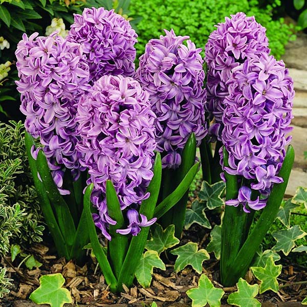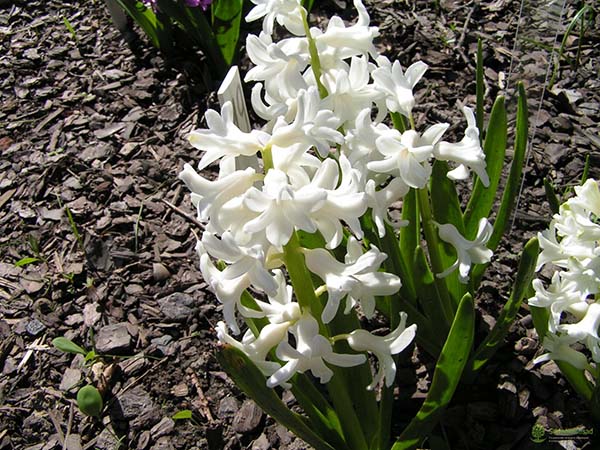 Beaucoup de gens plantent des jacinthes sous les arbres car elles fleurissent à un moment où il n'y a toujours pas de feuillage dense. Cependant, il faut garder à l'esprit que les arbres aspirent presque tous les nutriments du sol.
