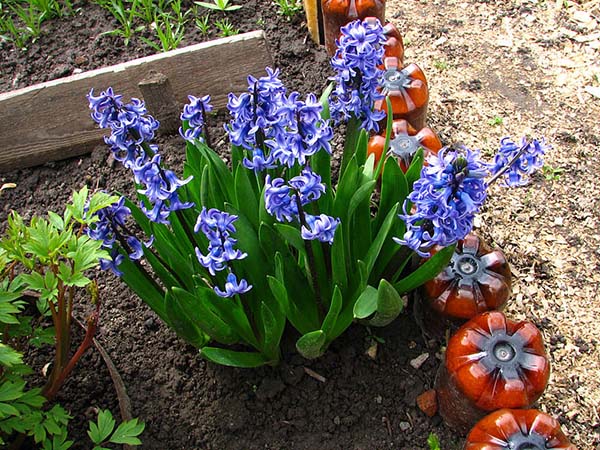 Ces fleurs bulbeuses ont fière allure sur parterre de fleurs en bouteilles en plastique.