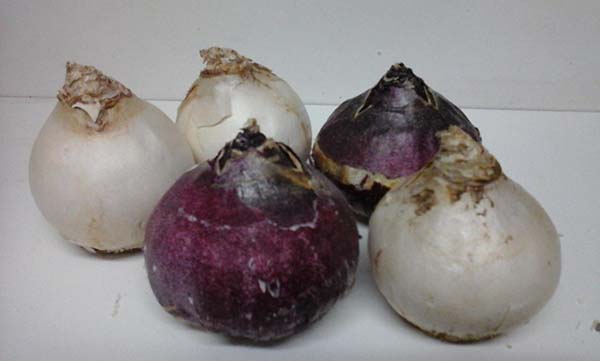 Si vous voulez que la jacinthe fleurisse immédiatement, il est recommandé de choisir des bulbes de 4-5 cm, les bulbes de 2-3 cm sont très jeunes, il y aura peu de fleurs, mais vous ne devez pas acheter de trop gros bulbes de 6-7 cm, ce sont déjà des spécimens assez anciens qui sont sur le point d'être mis à jour.