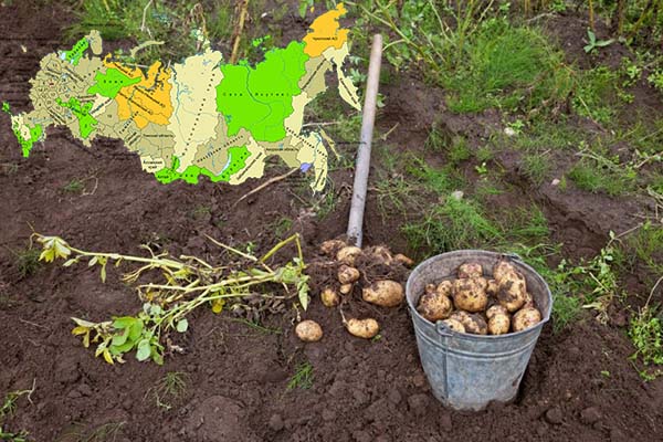Naturellement, les pommes de terre sont récoltées dans différentes régions et zones climatiques à certains moments. En effet, il est impératif de prendre en compte les conditions météorologiques, à savoir, le moment où la température baisse, le début des gelées d'automne, afin de choisir la variété (optimale) appropriée pour la culture.