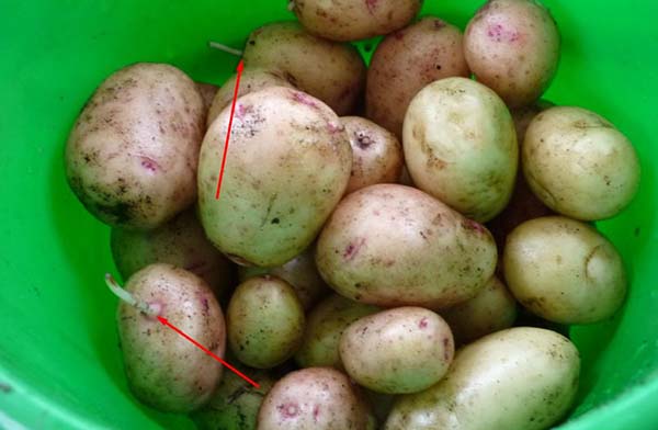 Si vous la creusez trop tard, la pomme de terre peut commencer à pousser, ses processus végétatifs reprendront, c'est-à-dire que des germes commenceront à se former, qui à leur tour commenceront à prélever tous les jus nutritifs du tubercule. Cela signifie qu'à la fin, il ne pourra pas être stocké pendant une longue période et, en outre, son goût se détériorera sensiblement.