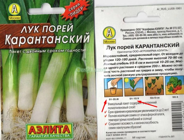 Exemple d'instructions de plantation sur l'emballagepoireaux de la variété populaire "Karantayskiy":