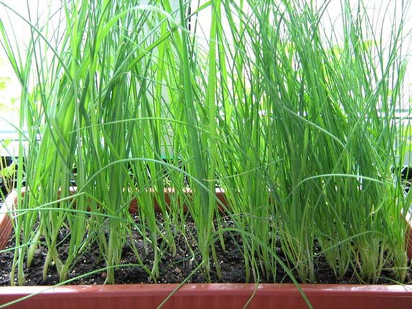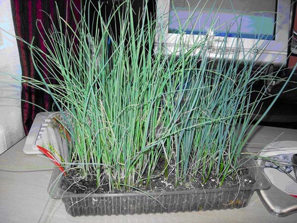 Forcer les oignons (verts ou plumes) généralement plantéà la maison, sur le rebord de la fenêtre.