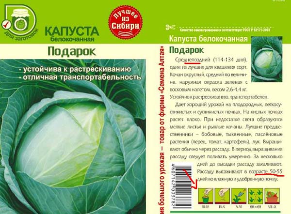 Une autre instruction et le moment de la plantation du chou blanc moyen tardif "Gift":